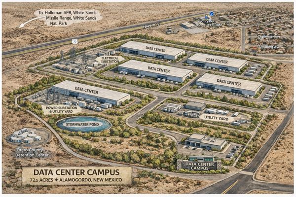 The 72-acre tract offers compelling long-term positioning for data infrastructure and technology-support uses due to its location within the emerging Alamogordo–Las Cruces–El Paso growth corridor. The region benefits from proximity to major fiber routes, stable electrical capacity from New Mexico’s power grid, and access to large solar energy resources—an increasingly important factor for modern data centers seeking renewable power offsets. The site’s scale, accessibility from U.S. Highway 70, and proximity to Holloman Air Force Base and regional research activity further support potential uses such as edge data centers, secure government-adjacent infrastructure, data storage facilities, technology contractor campuses, or supporting industrial development. As demand grows for distributed computing, AI processing, and resilient backup facilities across the Southwest, strategically located land parcels of this size are becoming increasingly attractive for long-term data infrastructure investment.