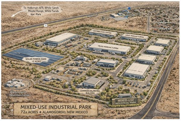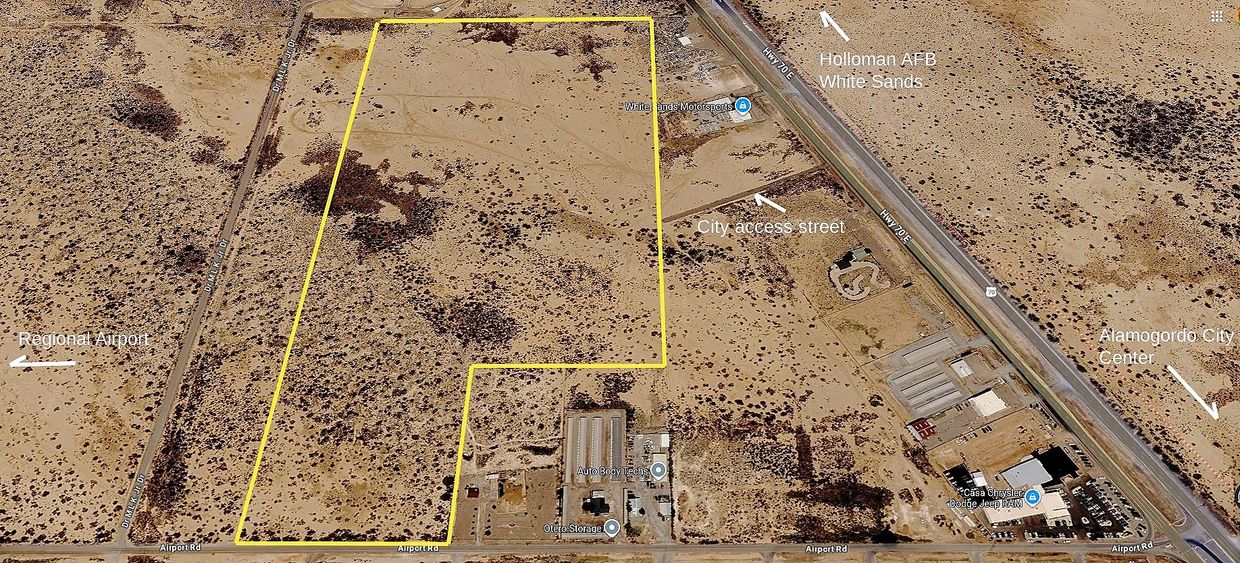 The property sits within one of Southern New Mexico’s most important defense and aerospace regions, located near Holloman Air Force Base and the broader testing and research activity associated with White Sands Missile Range. The area supports a wide range of military, aerospace, and government contractor operations, creating ongoing demand for contractor yards, testing support facilities, secure storage, logistics yards, and light industrial development. As defense and aerospace investment continues to expand across the region, strategically located land with highway access and development flexibility presents strong long-term potential for contractor and support uses tied to these missions.